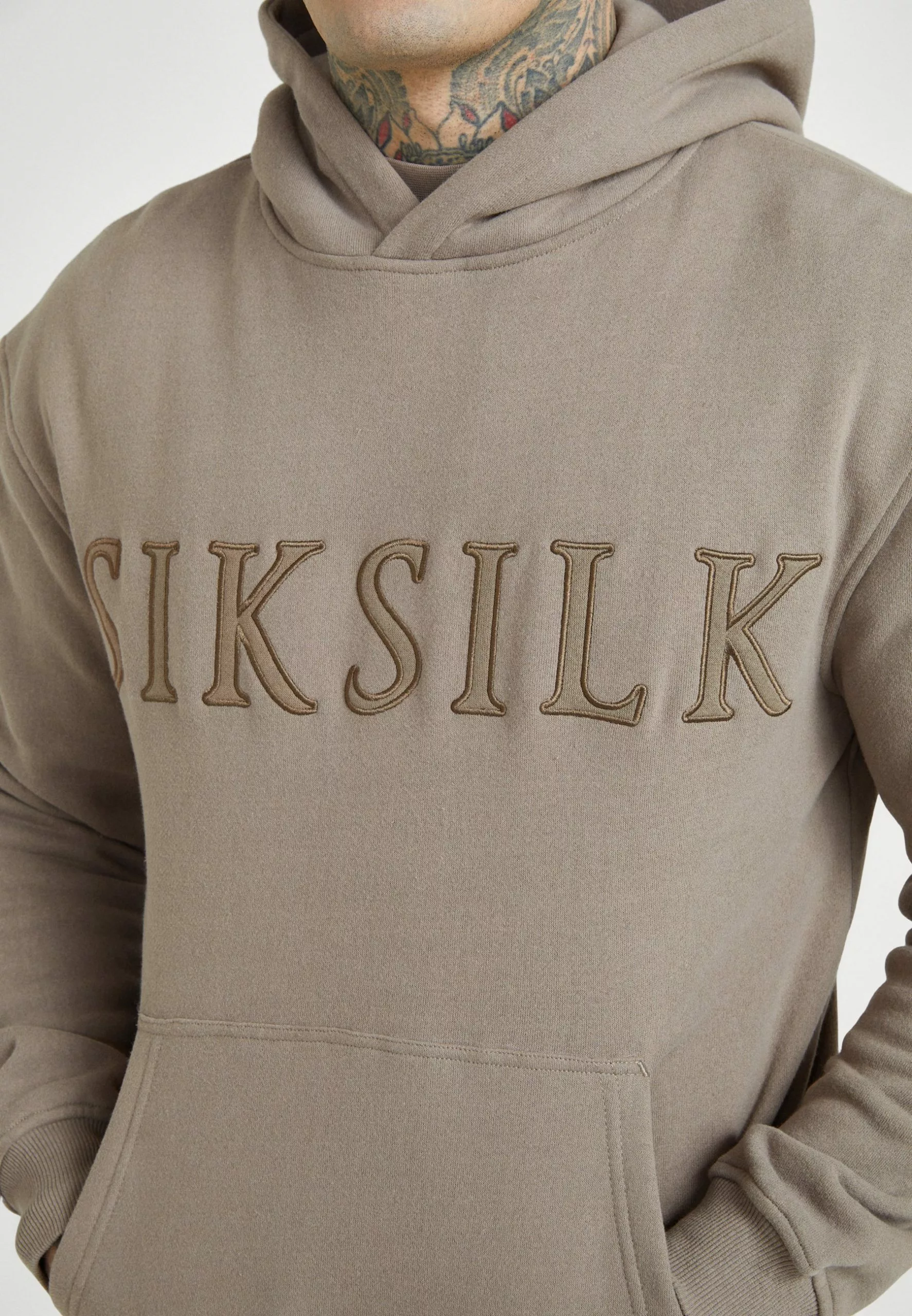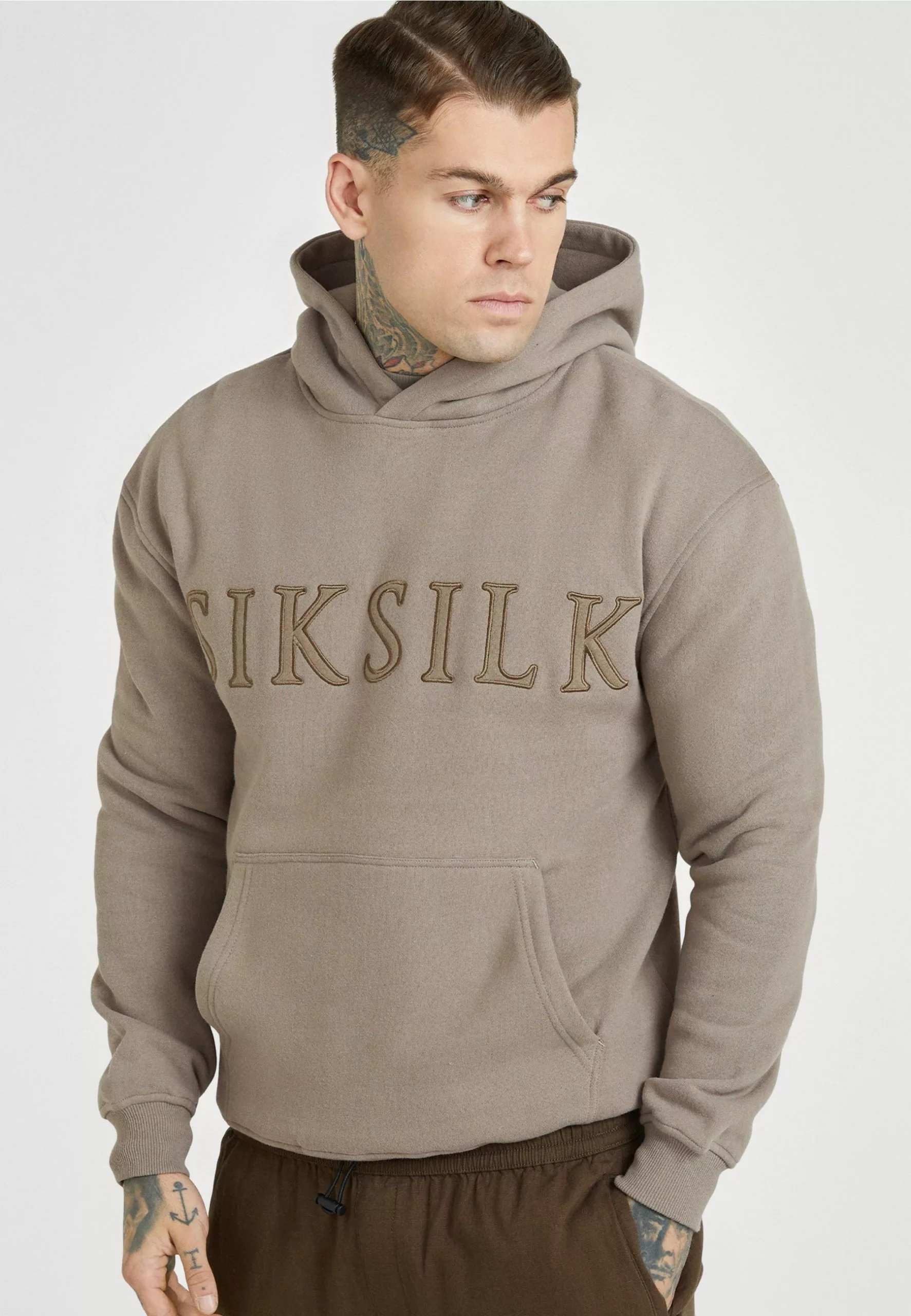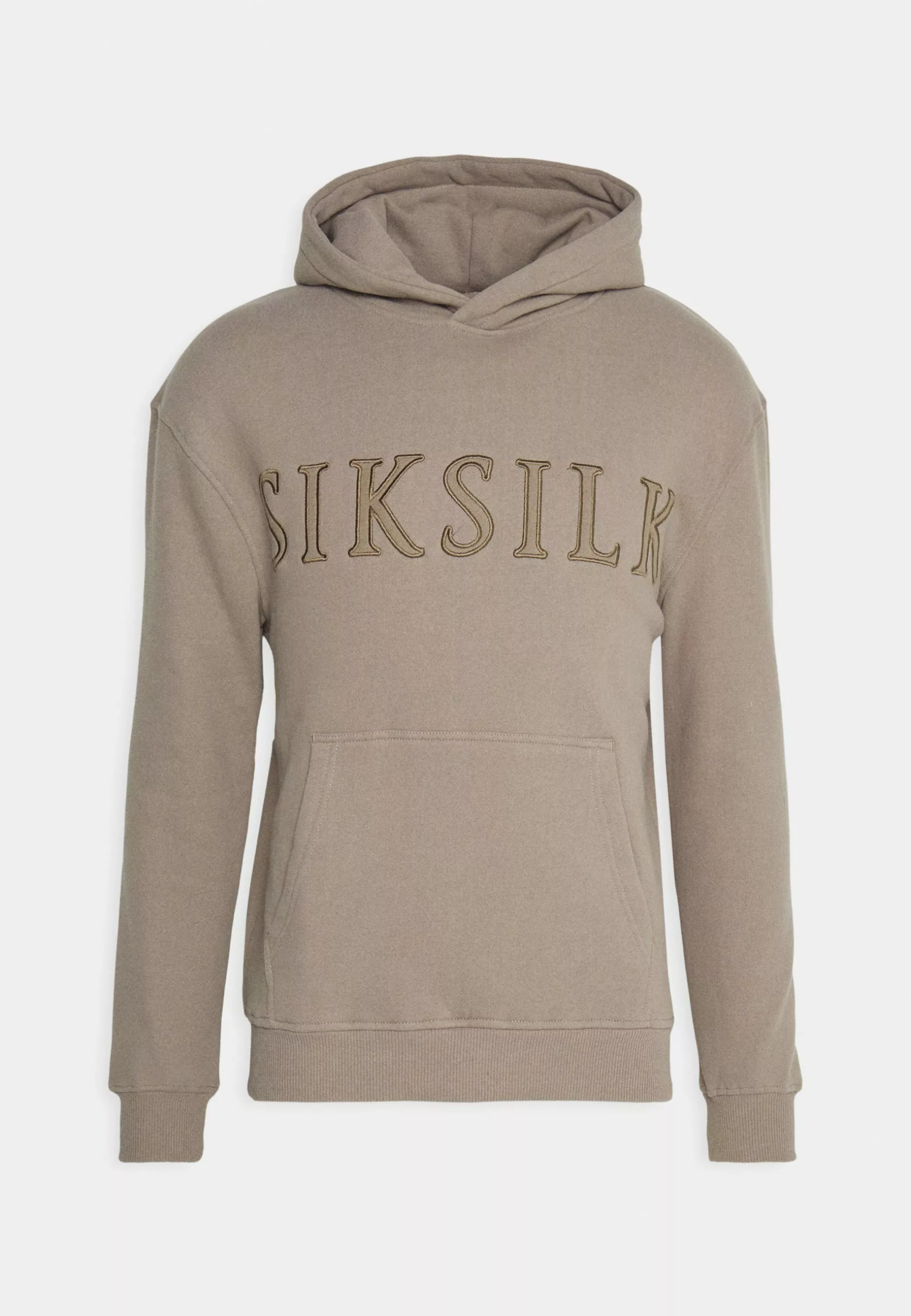 SikSilk Applique Logo Relaxed Fit Hoodie – Sweater – Washed Brown