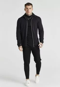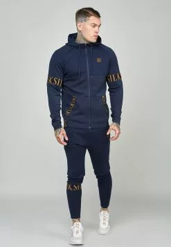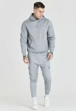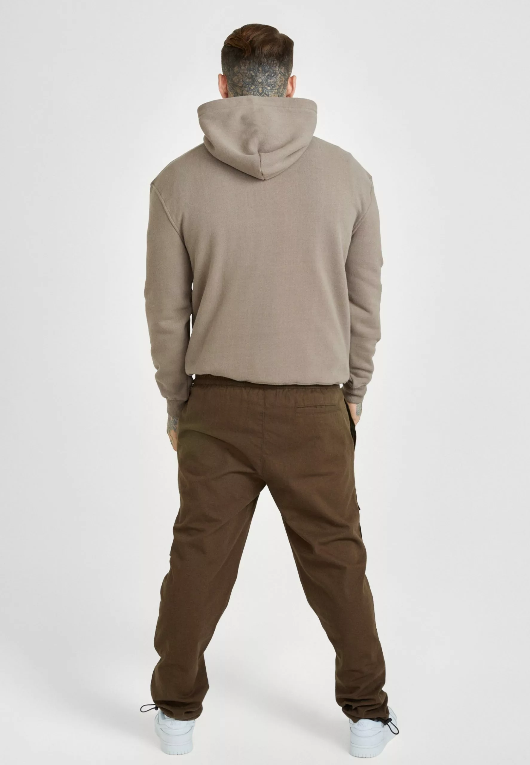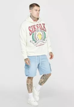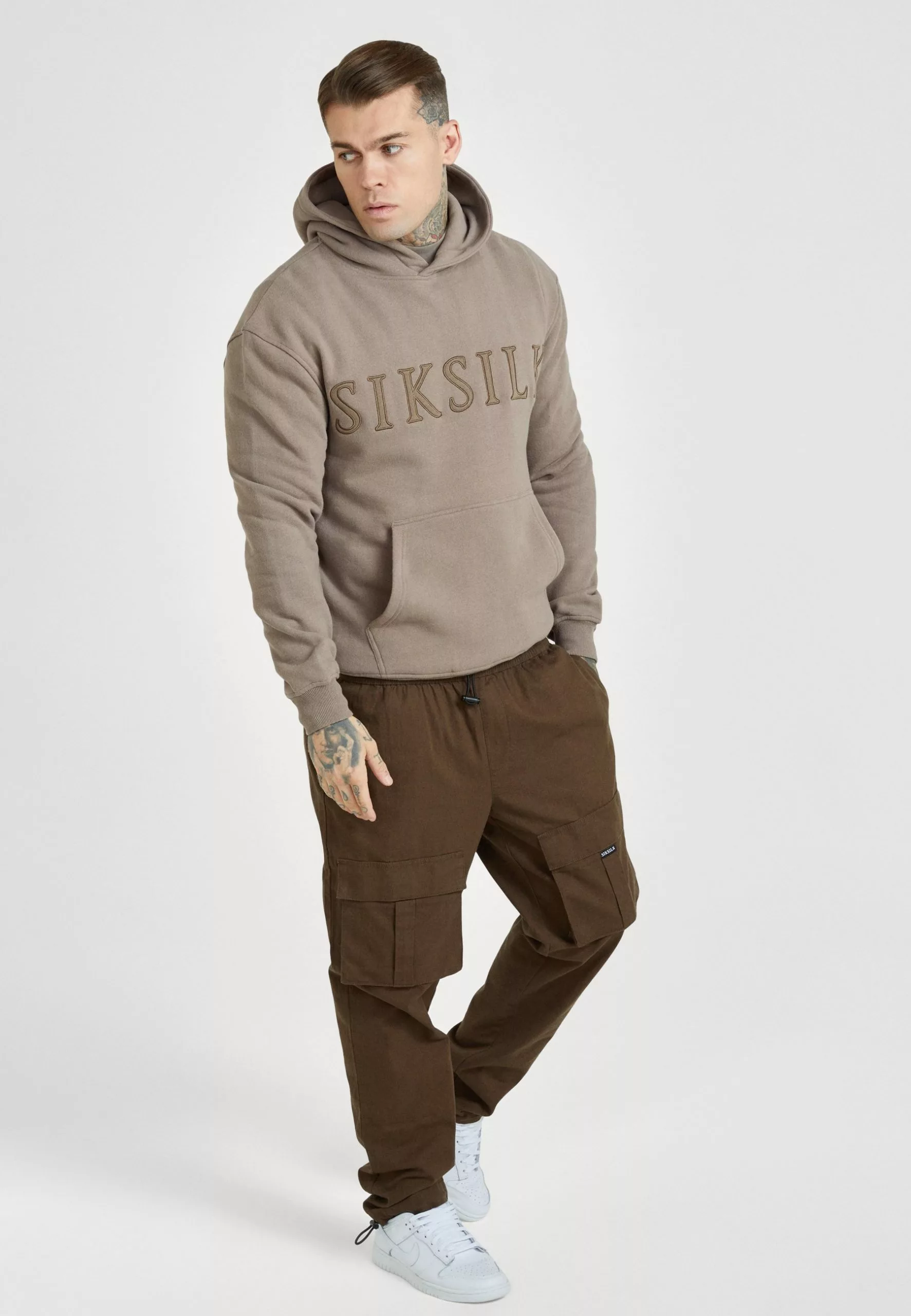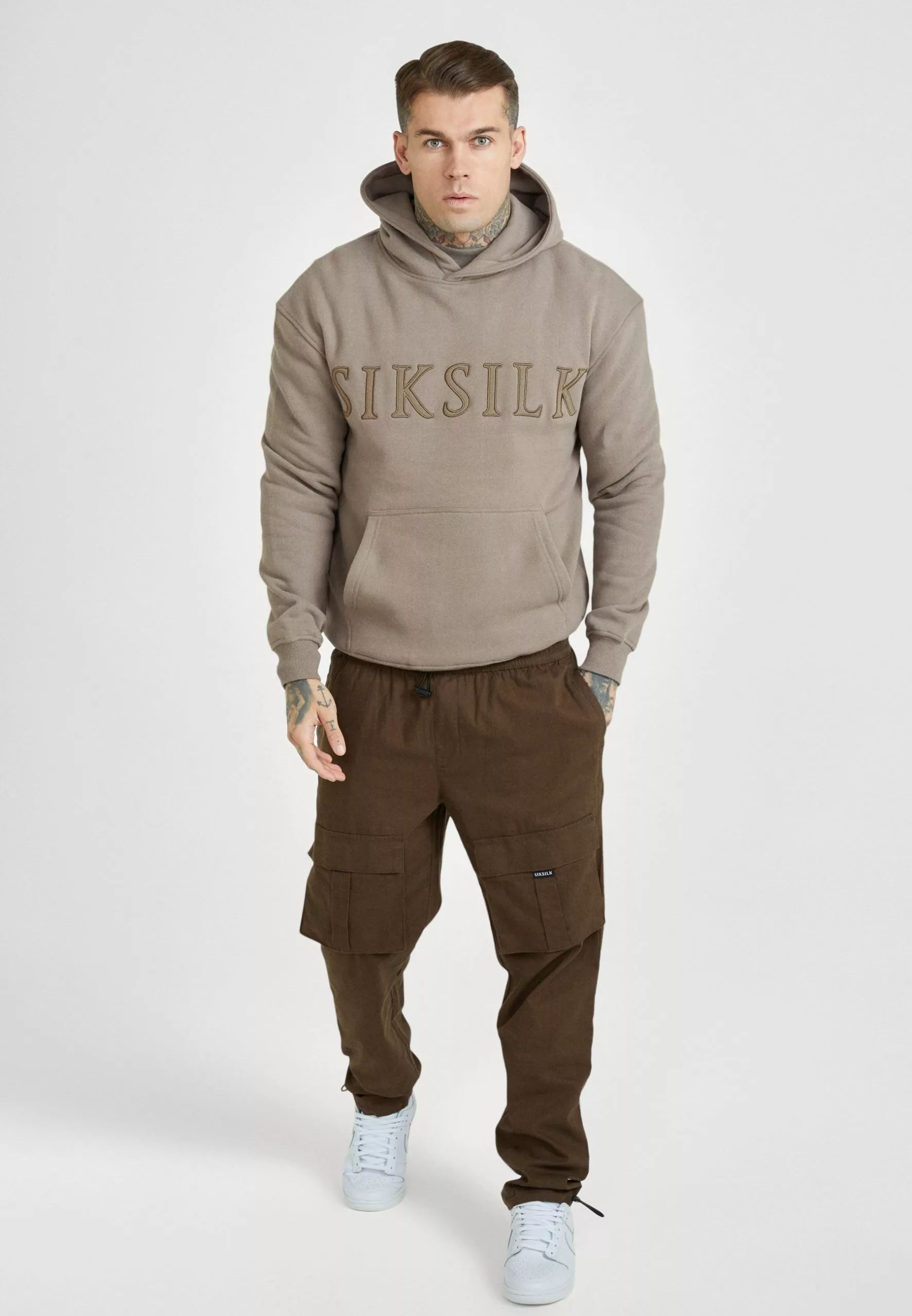 SikSilk Applique Logo Relaxed Fit Hoodie – Sweater – Washed Brown