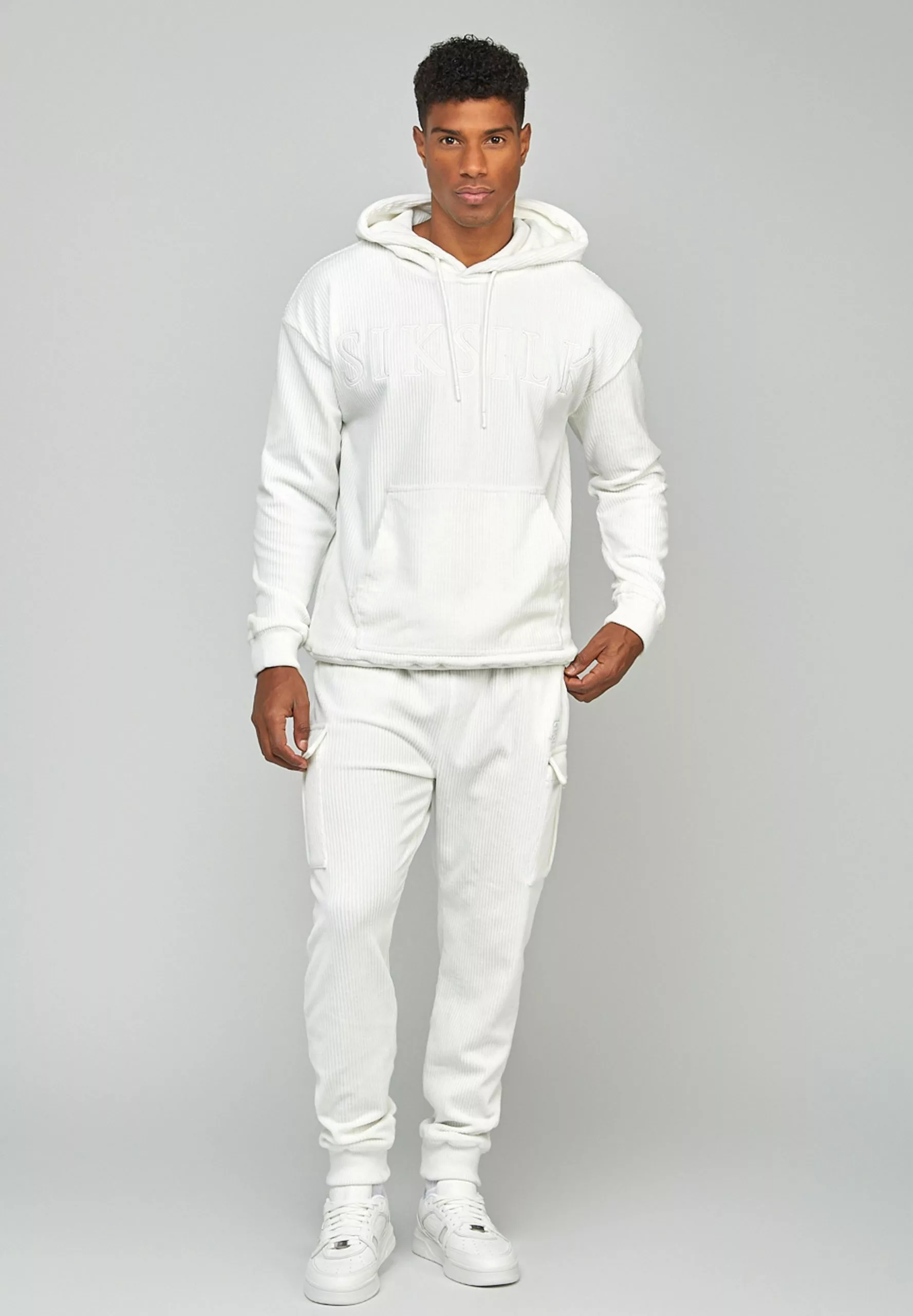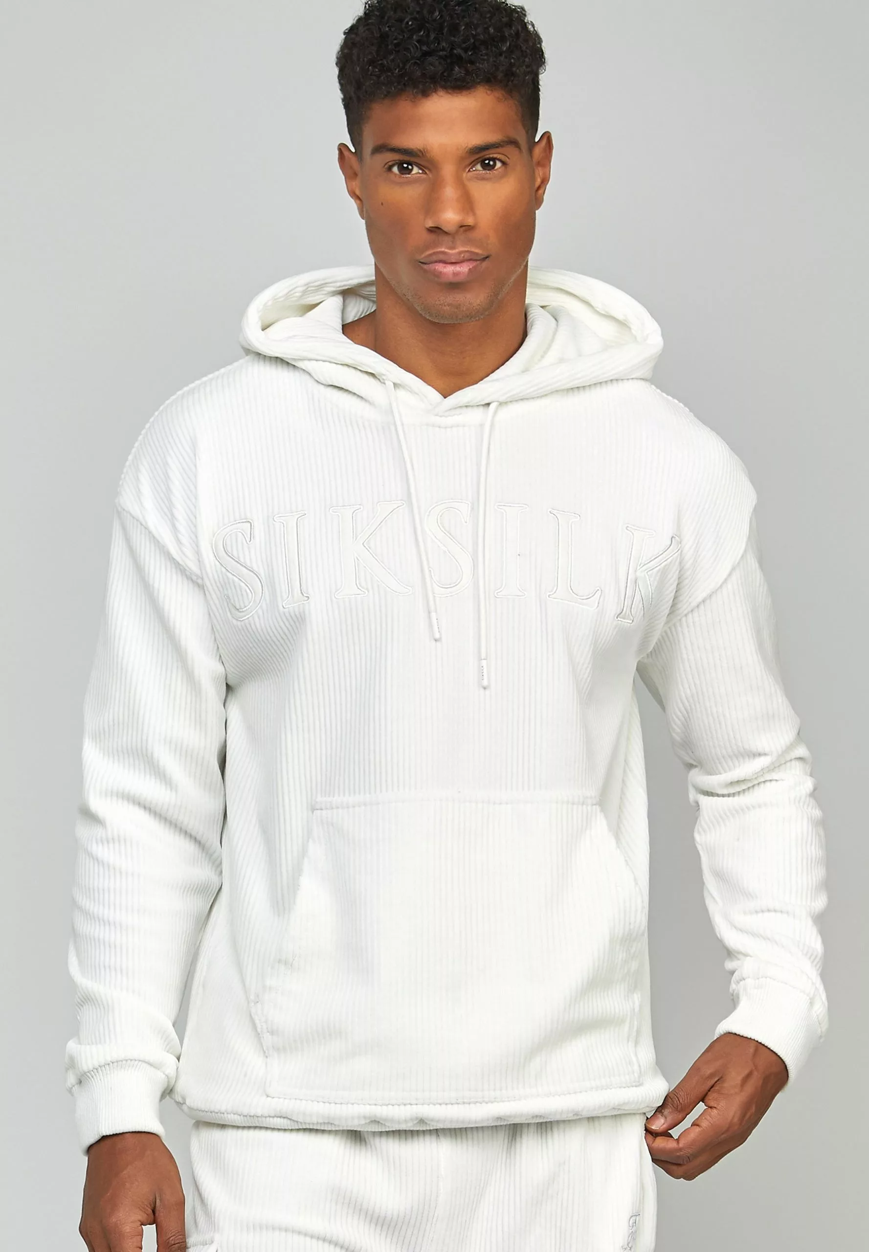 SikSilk Corduroy Applique Logo- Hoodie – Ecru