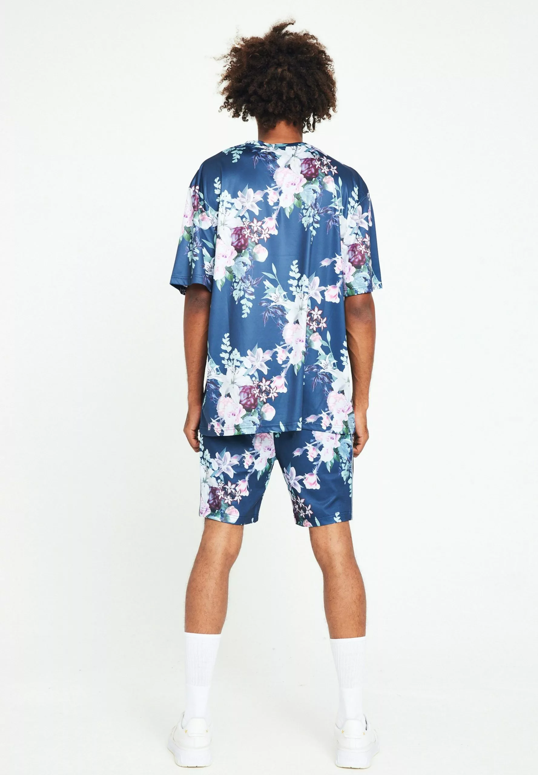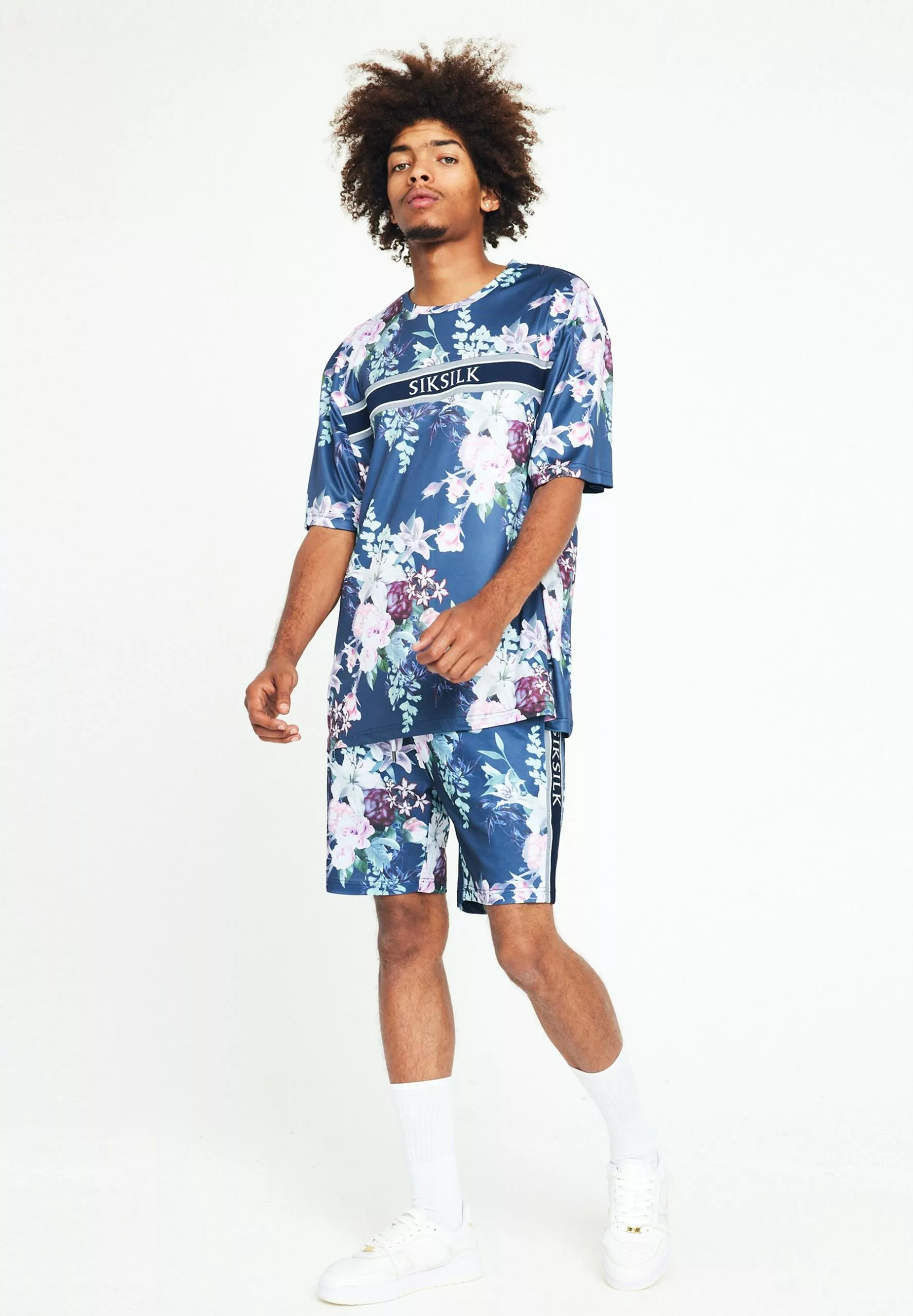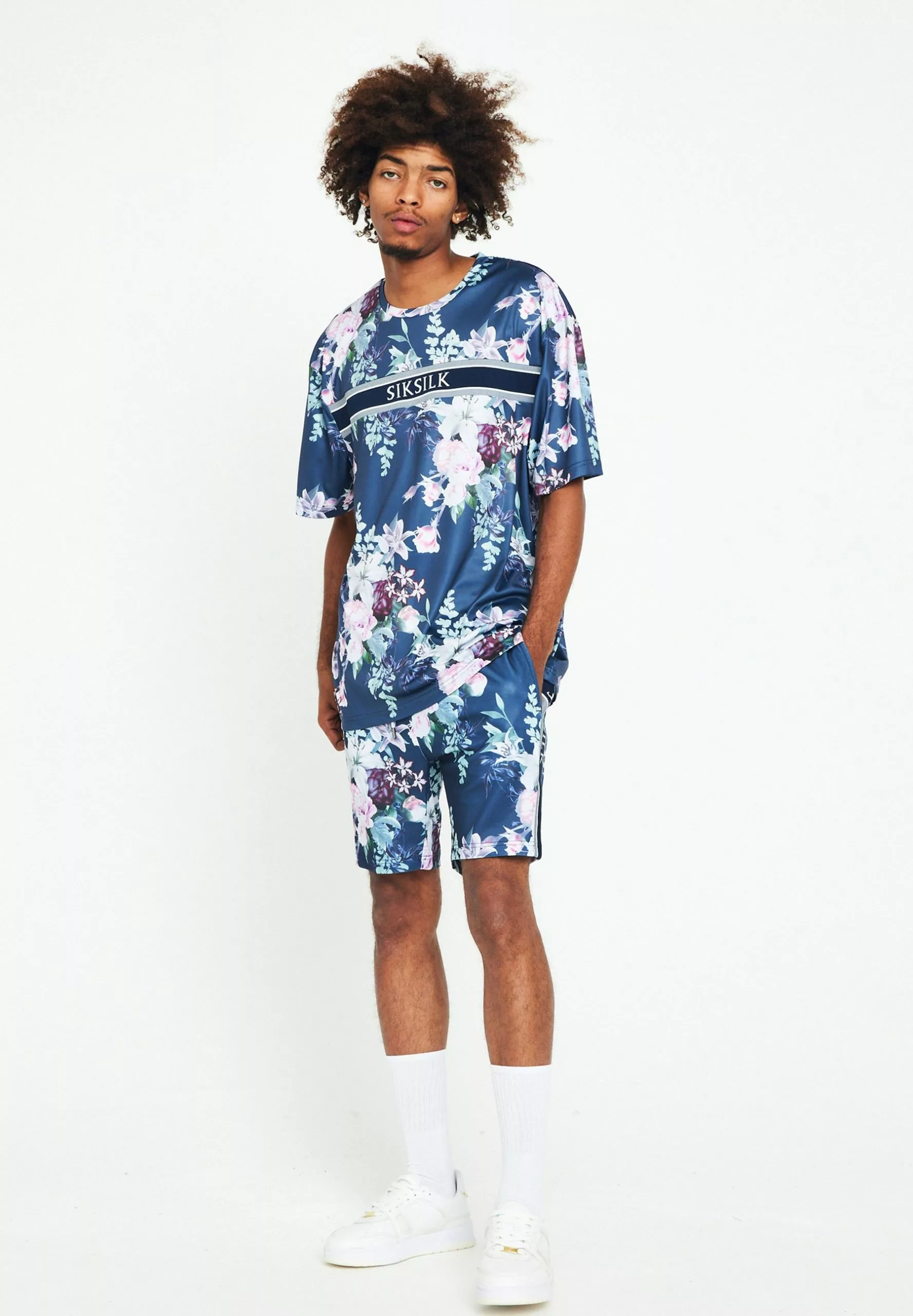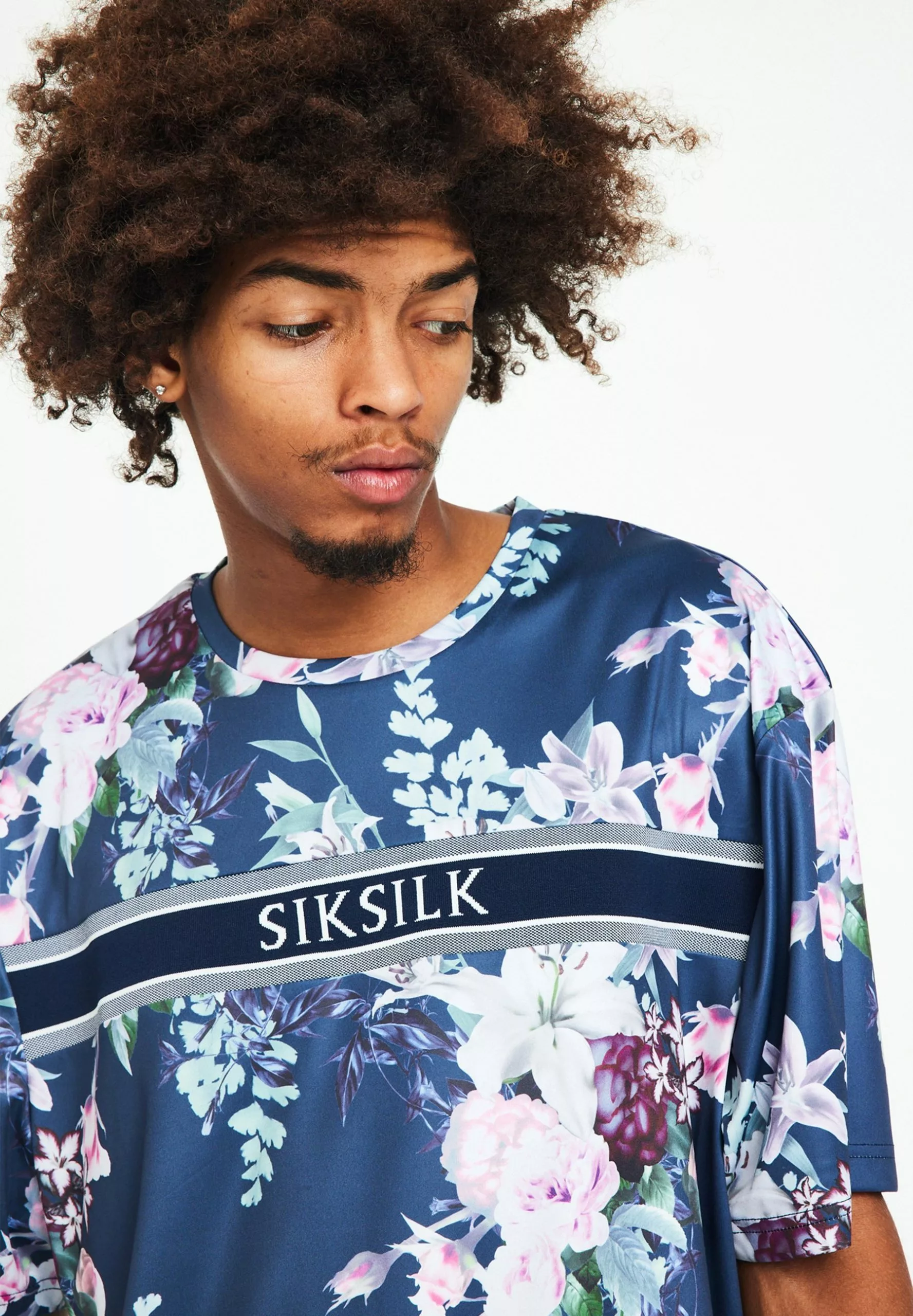 SikSilk Floral Print – T-Shirt Print – Navy