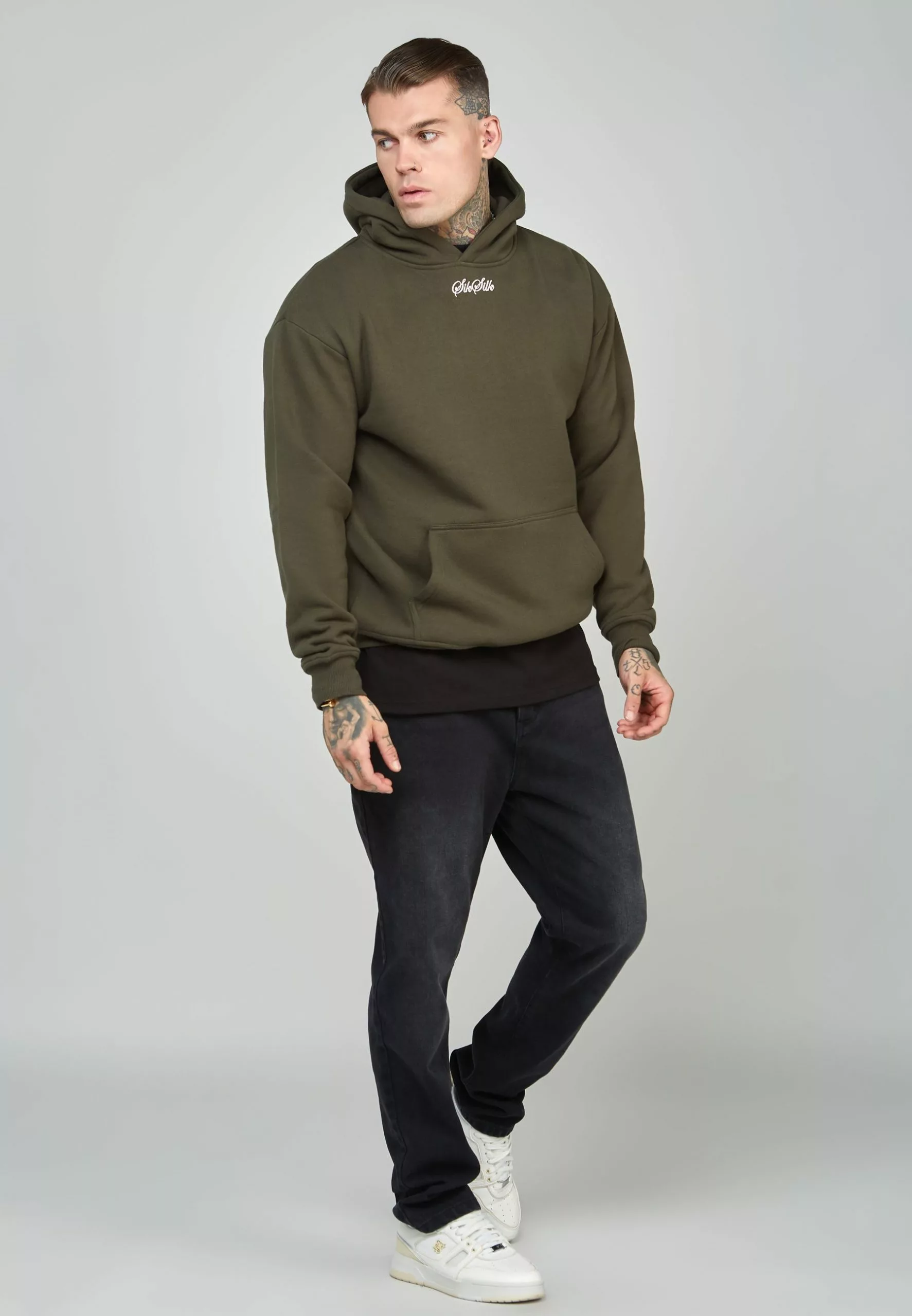 SikSilk Script Logo Oversized Hoodie – Hoodie – Khaki