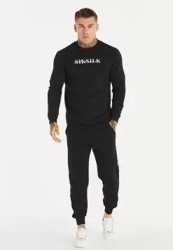 SikSilk Dual Script Logo Crew – Sweater – Black