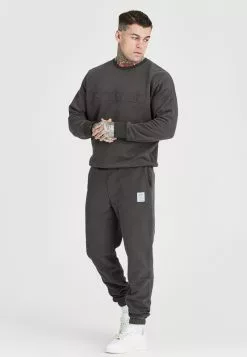 SikSilk Foundation Embossed Oversized Crew – Sweater – Black