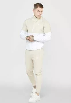 SikSilk Taped Track Top – Sweater Met Rits – Stone/White
